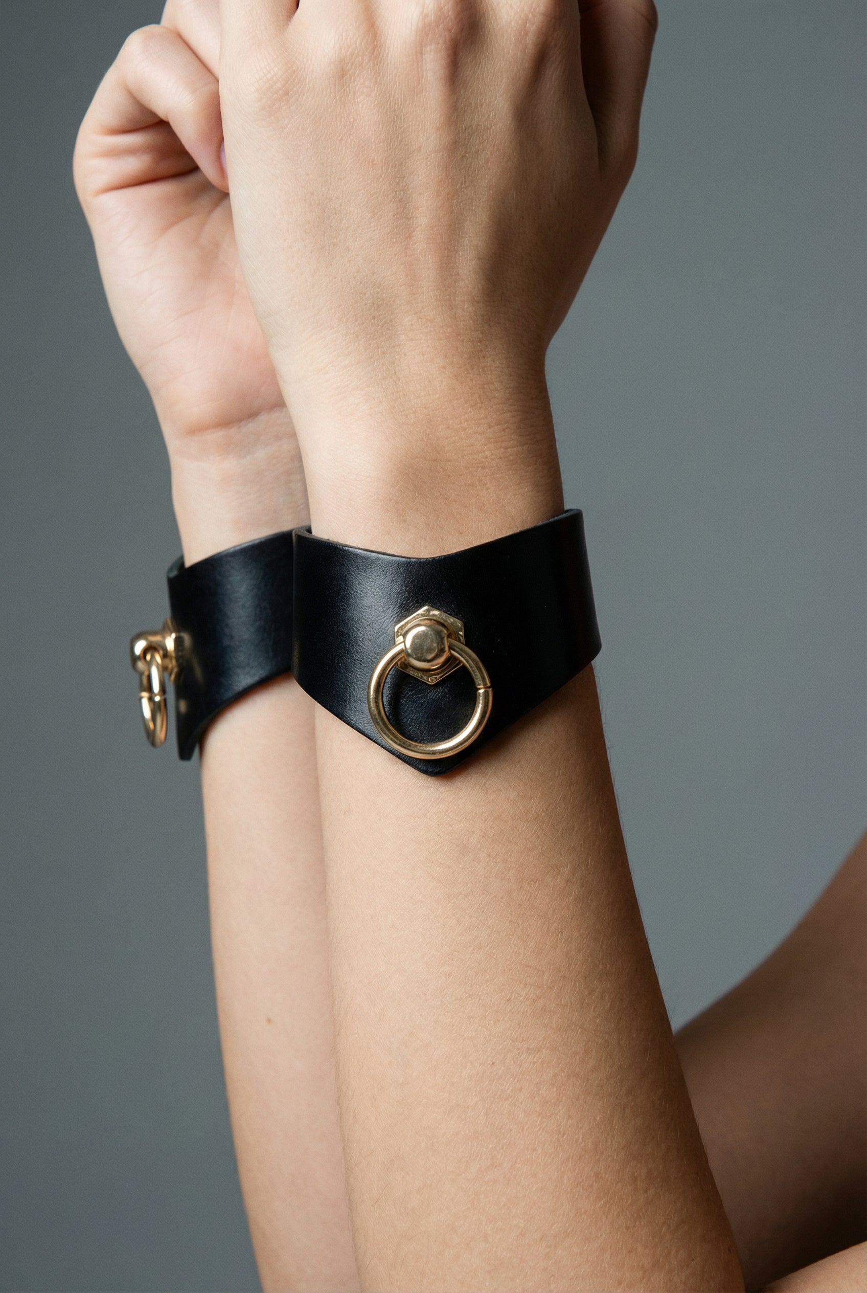 At the front, a subtle O-ring adds just the right amount of intrigue. Out in the wild? It’s a discreet nod to your secret world — an elegant flash that says you play by your own rules. Behind closed doors, it’s your anchor for leashes, clips, or whatever your imagination dares. Each set comes with a double dog clip for endless restraint possibilities: classic handcuff style, wrist-to-wrist, wrist-to-collar, wrist-to-bra or however you want to be claimed.